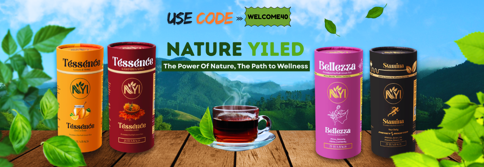 Tessence Premiuim Herbal Green Tea - Kashmiri Kahwa ( A Royal Wellness with Cinnamon & Saffron) (Retail Friendly Pack - 25 Tea Bags)